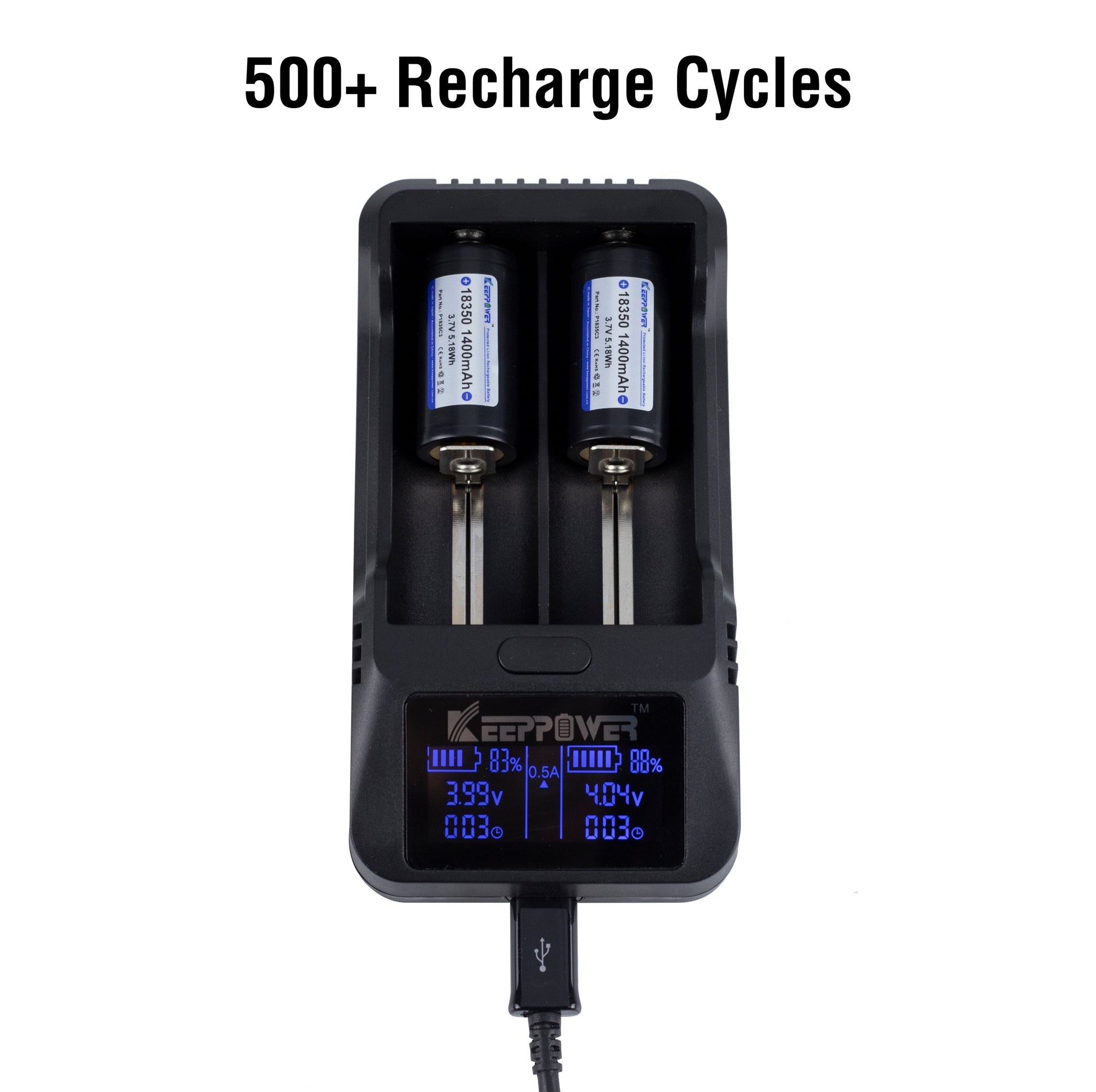 Keeppower Protected 18350 Li-ion Rechargeable Battery Button Top 1400mAh 3.7V for Flashlights (2 Pack)