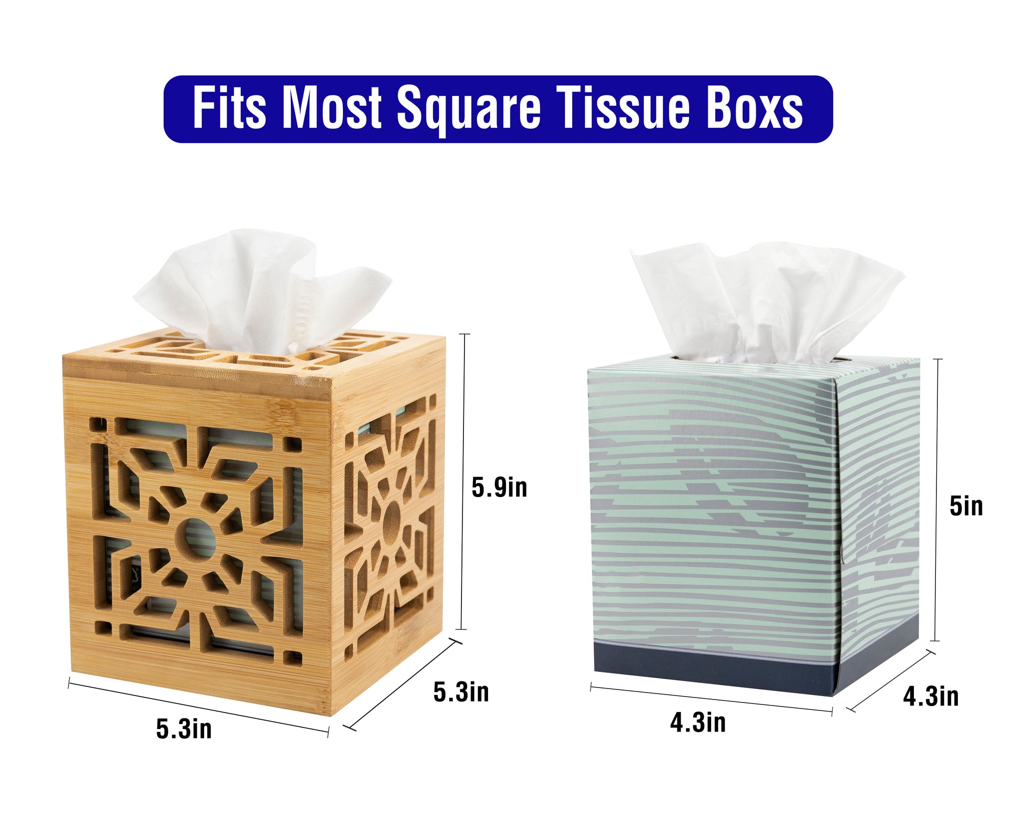 - 【Standard Size】Measures 5.3" (L) x 5.3" (W) x 5.9" (H), fits all standard cubic tissue boxes.
