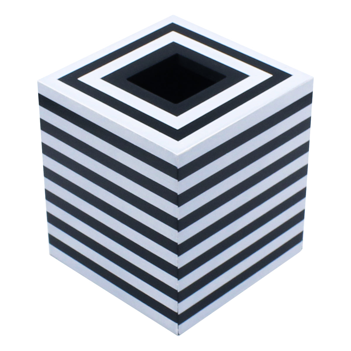 - 【Handmade Home Decor】This black&white painted cube tissue box holder is handmade by traditional craftmanship and features a concentric stripe design. Its unique and eye-catching look will instantly appeal and add a minimal yet stylish touch to your countertop or tabletop. Blends well with modern, mid-century and minimalist home decor themes.
