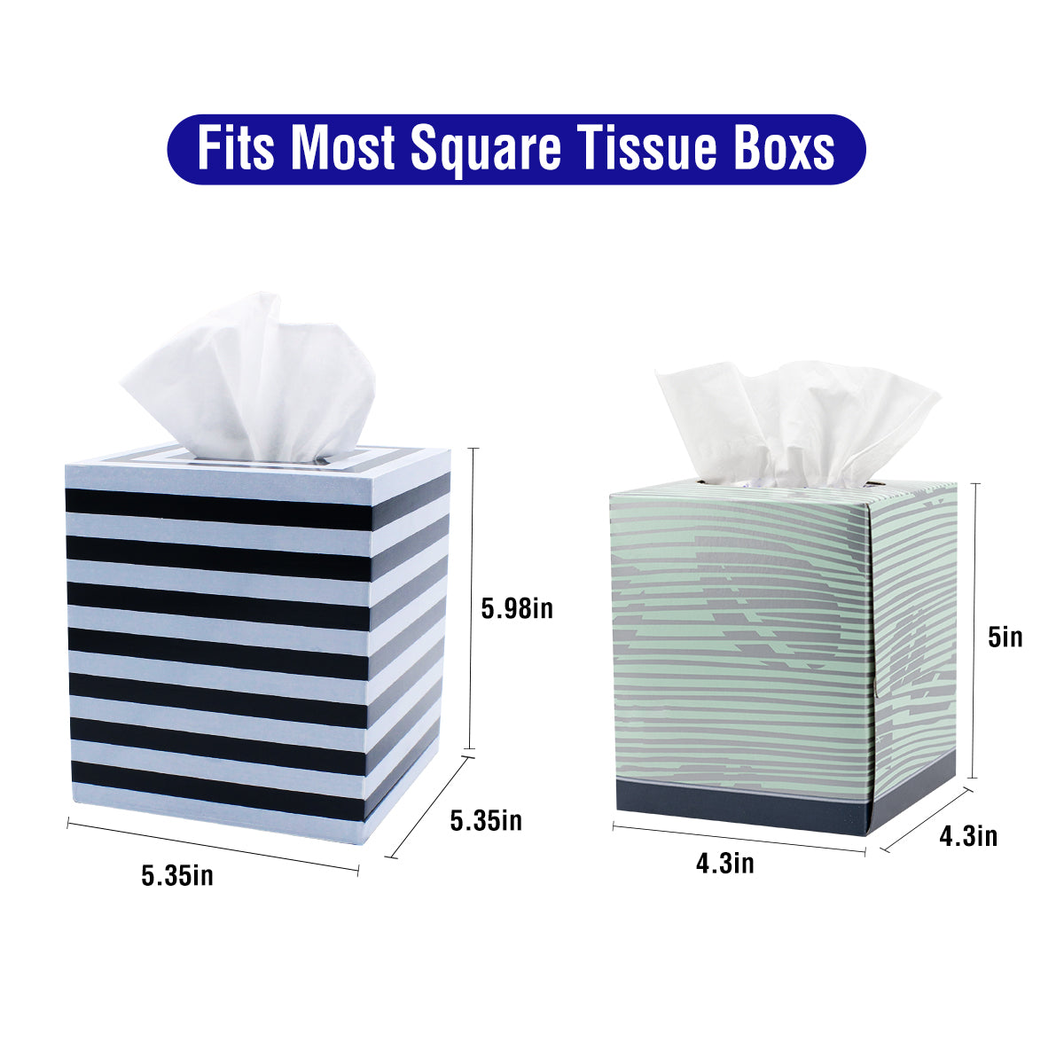 - 【Standard Size】Measures 5.3" (L) x 5.3" (W) x 5.9" (H), fits all standard cubic tissue boxes.